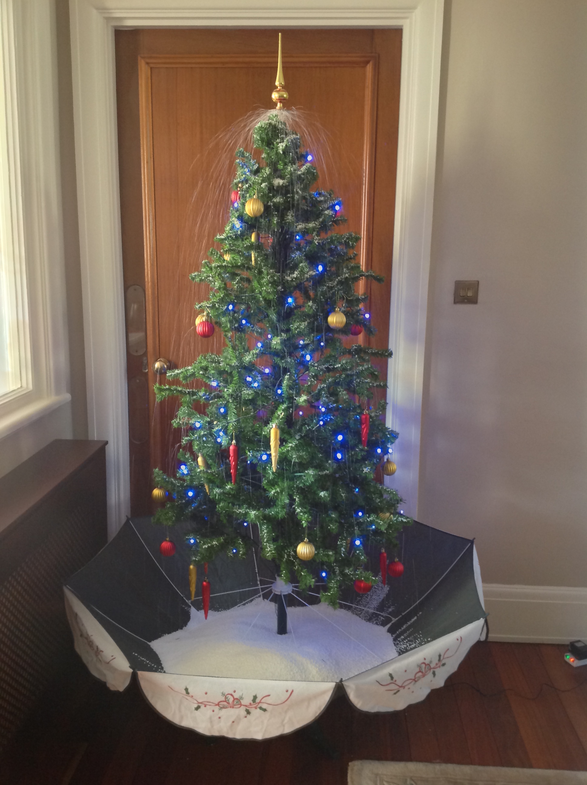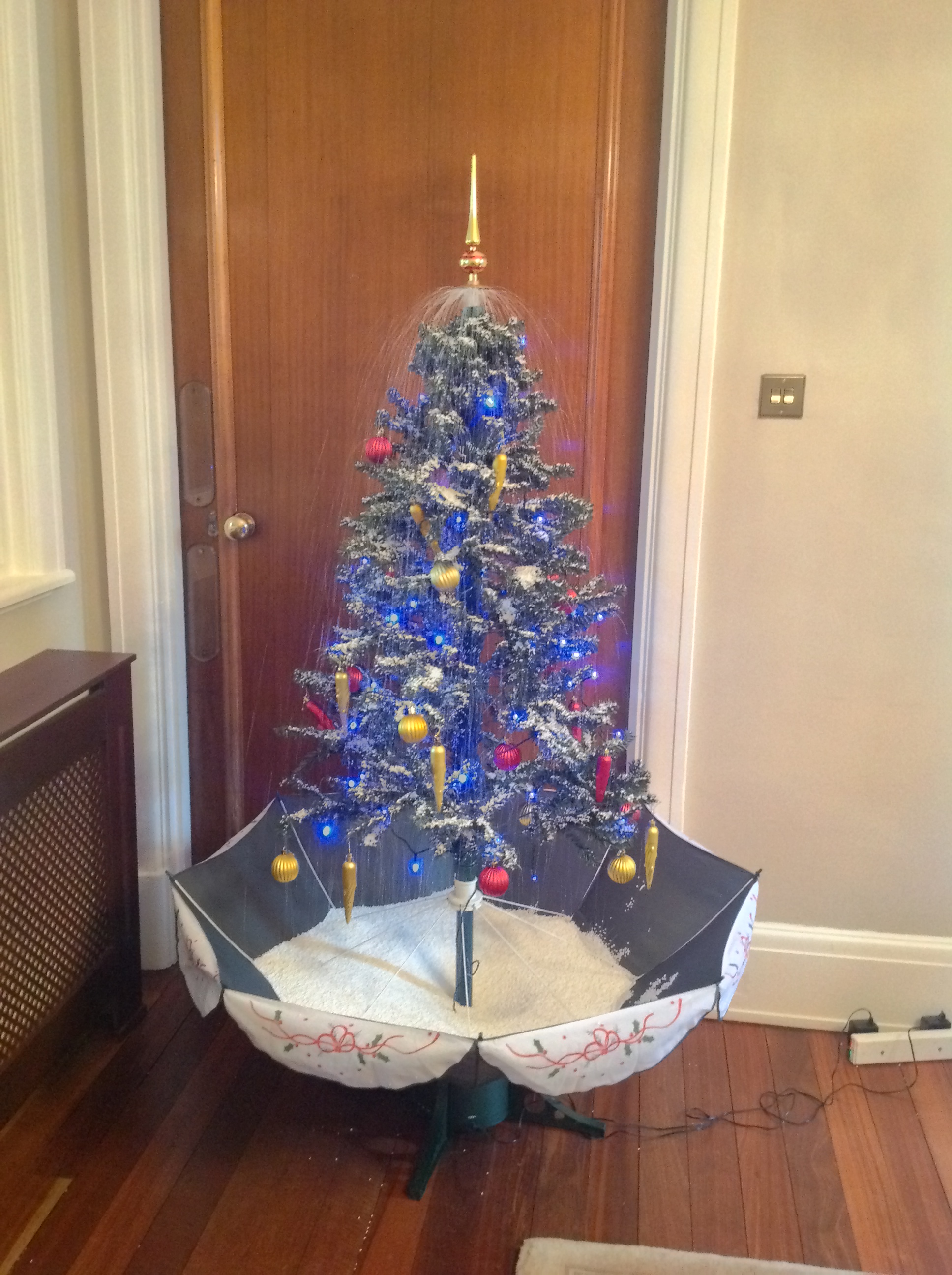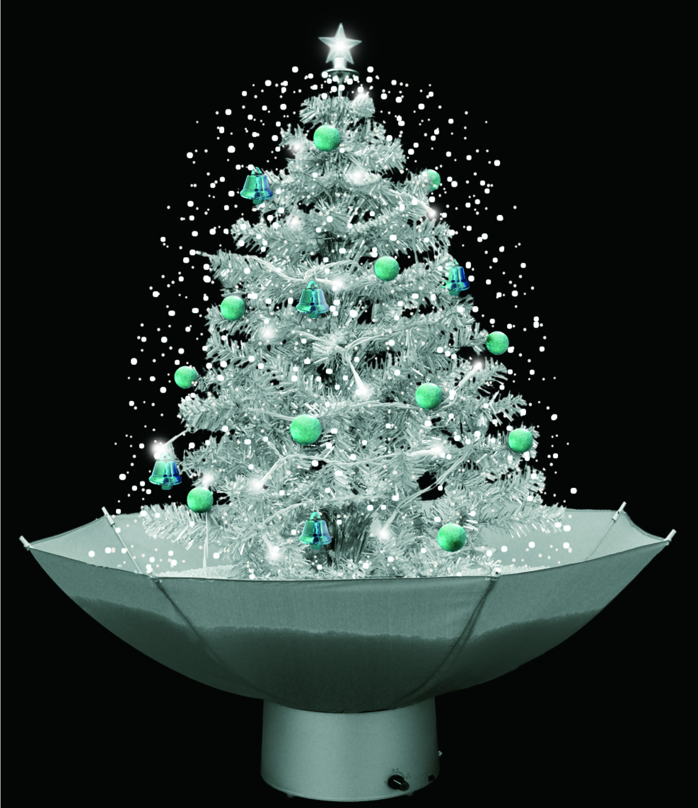 The snowing action is controlled by an adjustable fan in the base of the tree.