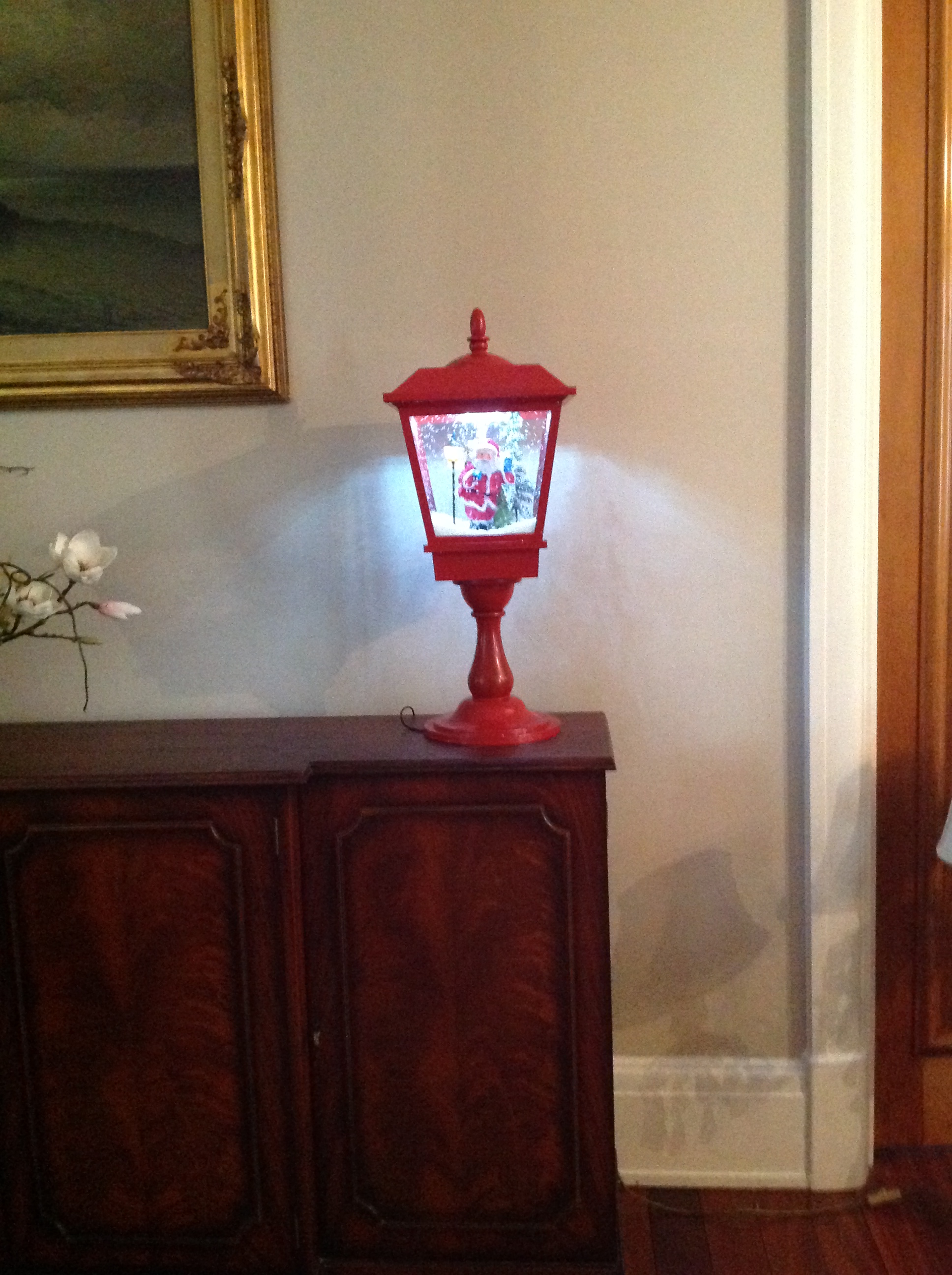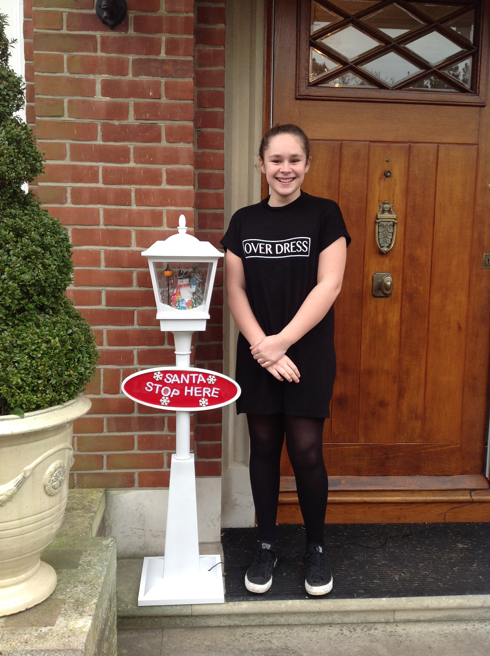 The lampost is smaller than the full sized traditional lampost and has the added feature of the Santa Stop Here plaque.