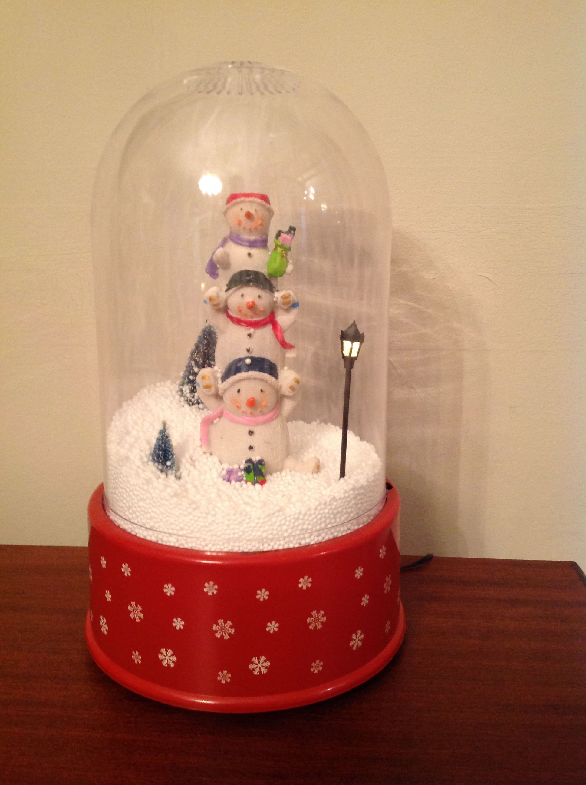 Each snow dome has realistic snow, music and lights.